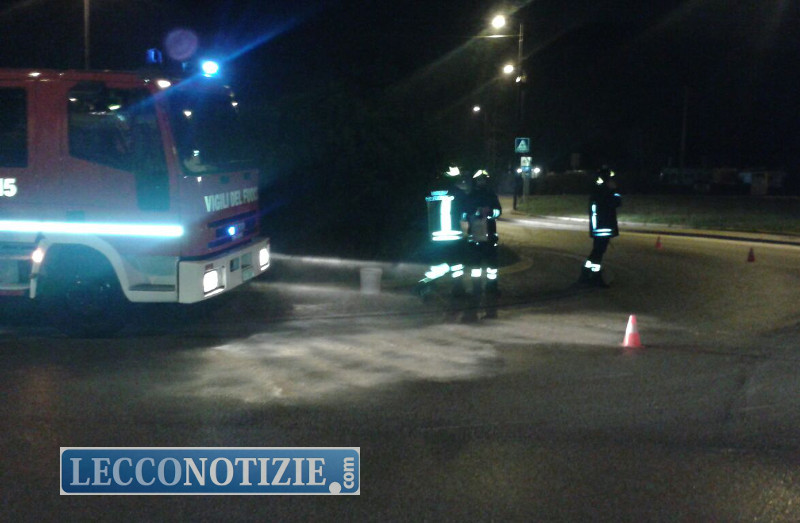 VALMADRERA – Vigili del Fuoco impegnati alla rotonda di Parè, nel comune di Valmadrera, alle 18 circa, dove c’è stato un riversamento o una perdita di olio o di un liquido viscoso, da parte di un mezzo, che ha reso scivolosissima la pavimentazione stradale.