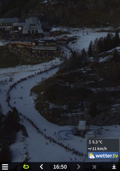 Esaustiva la foto catturata dalla Web Cam dei Piani di Bobbio, delle 16.50, nella quale si vede una coda infinita di persone in attesa di prendere la cabinovia per scendere a valle, coda che ha raggiunto la seggiovia Fortino.