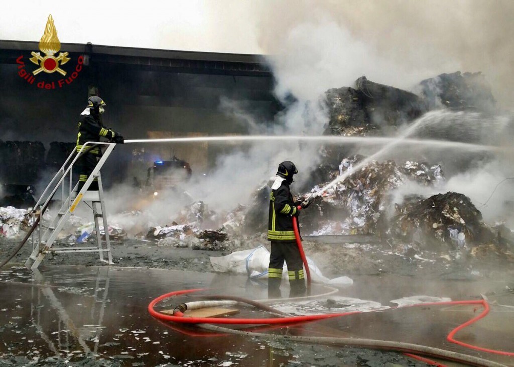 Per precauzione, è stata decisa l’evacuazione delle 12 famiglie residenti nelle 2 palazzine attigue allo stabilimento. Solo dopo le 11 il rogo è stato placato dell’azione dei pompieri e le operazioni sono poi proseguite per smassare i cumuli del materiale che ha preso fuoco.