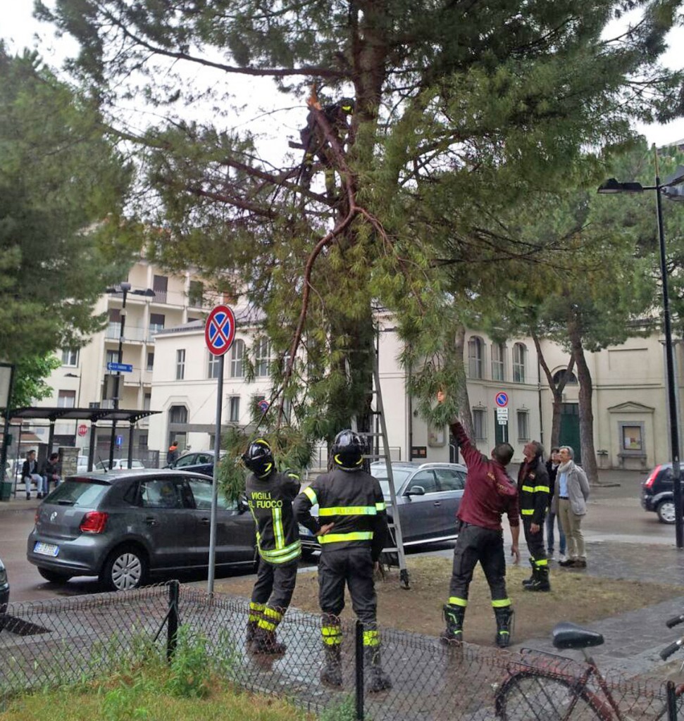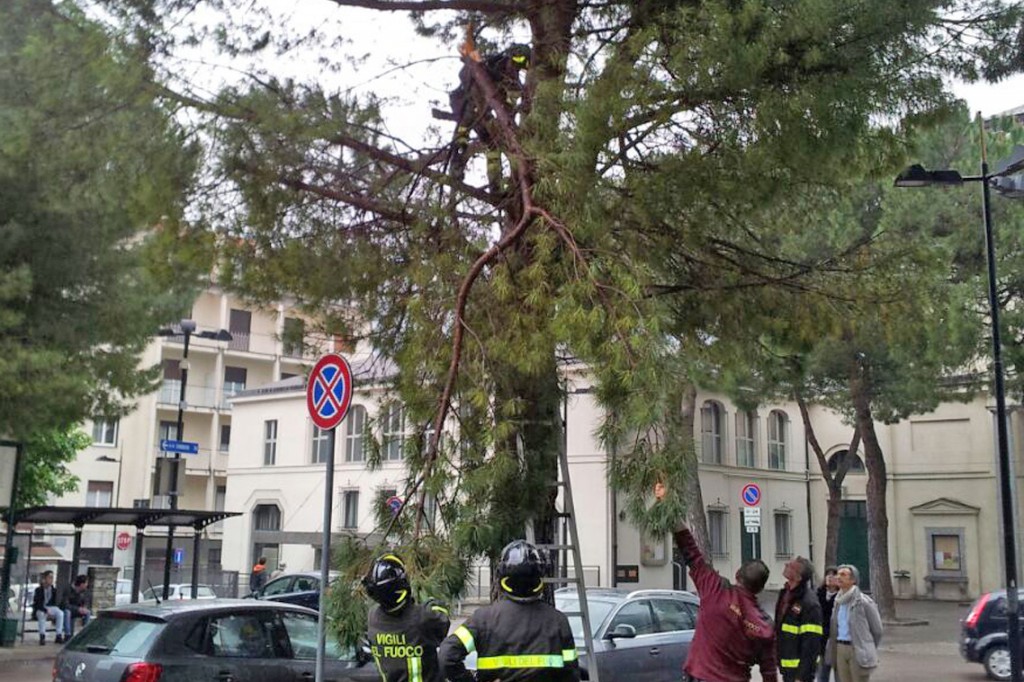 Dopo aver udito un “crac” sospetto, alcuni passanti si sono resi conto che si trattava del rumore del grosso ramo che si era spezzato e, temendo potesse cascare sul marciapiede, hanno deciso di avvisare i pompieri.