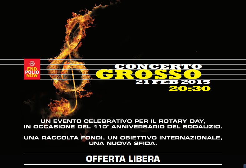 Una serata aperta al pubblico e ad offerta libera, un evento dedicato alla musica che si contestualizza nel progetto “Concerto Grosso” – iniziativa organizzata dal Distretto 2042 del Rotary International e portata avanti simultaneamente dai suoi 42 club per celebrare il Rotary Day, sodalizio internazionale che quest’anno compirà 110 anni.