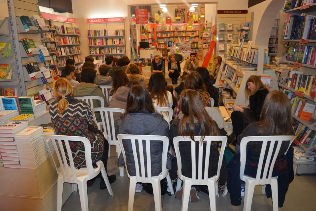 Alle 9, Vitali è stato accolto alla Libreria di via Cattaneo di Lecco da un pubblico di giovani studenti, Anna Regazzoni, titolare della libreria del centro Lecco, e dal giornalista Gianfranco Colombo