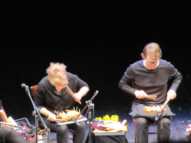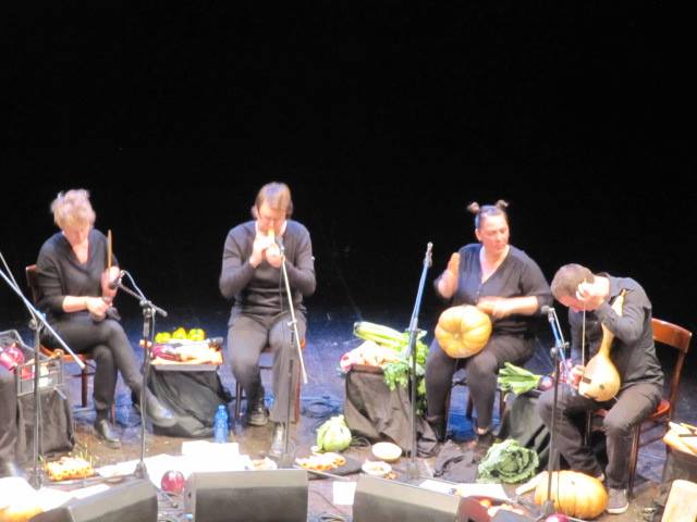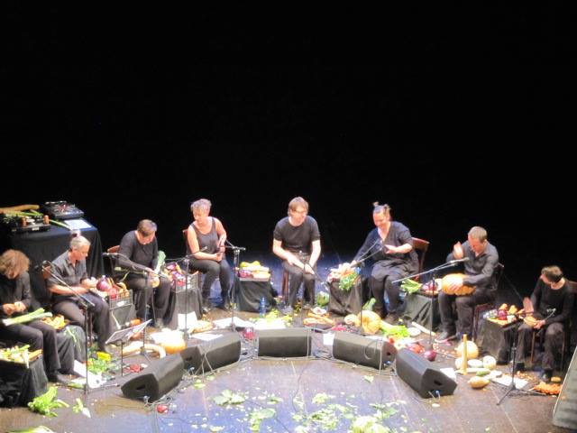 Già, a suonare le più svariate musiche spaziando dalla musica contemporanea, al beat-oriented House, passando per l’Electtronica speriamentale, Free Jazz, Noise, Dub e arrivando al Clicks’n’Cuts, sono stati i 12 musicisti armati di zucche, carote, peperoni e molte altre verdure fresche.