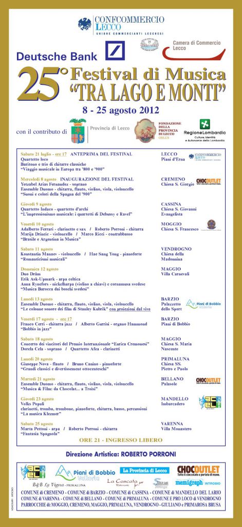 Il Festival Tra Lago e Monti è sostenuto, tra gli altri, anche da Confcommercio Lecco, Deutsche Bank e la Camera di Commercio, con il contributo di Provincia di Lecco, Fondazione della Provincia e Regione Lombardia.
