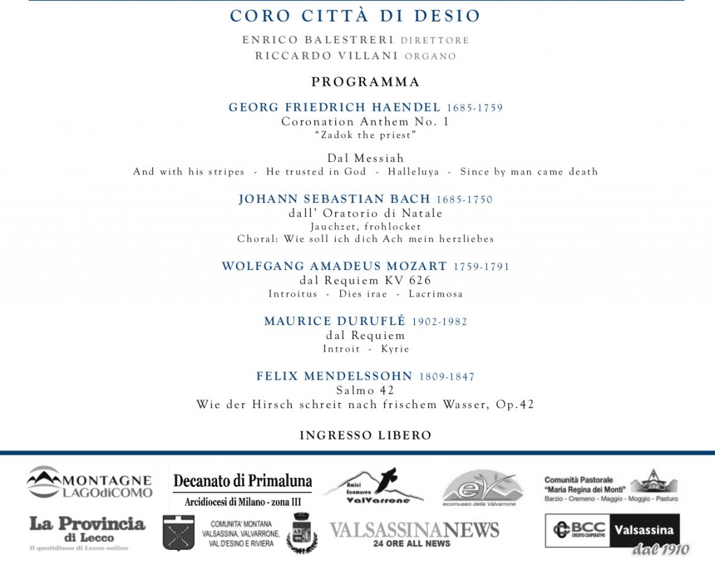 L’inaugurazione sarà tenuta dal Coro Città di Desio che proporrà un programma di capolavori in occasione del 30° anniversario del coro lombardo diretto da Enrico Balestrieri e accompagnato dal maestro milanese Riccardo Villani. Questo sarà il primo di tanti appuntamenti in cui l’organo sarà il protagonista insieme ad altri strumenti con cui verranno messe in luce le numerose possibilità di questa meravigliosa macchina sonora definita “Re degli strumenti” da Mozart. Qui il programma dell’inaugurazione.