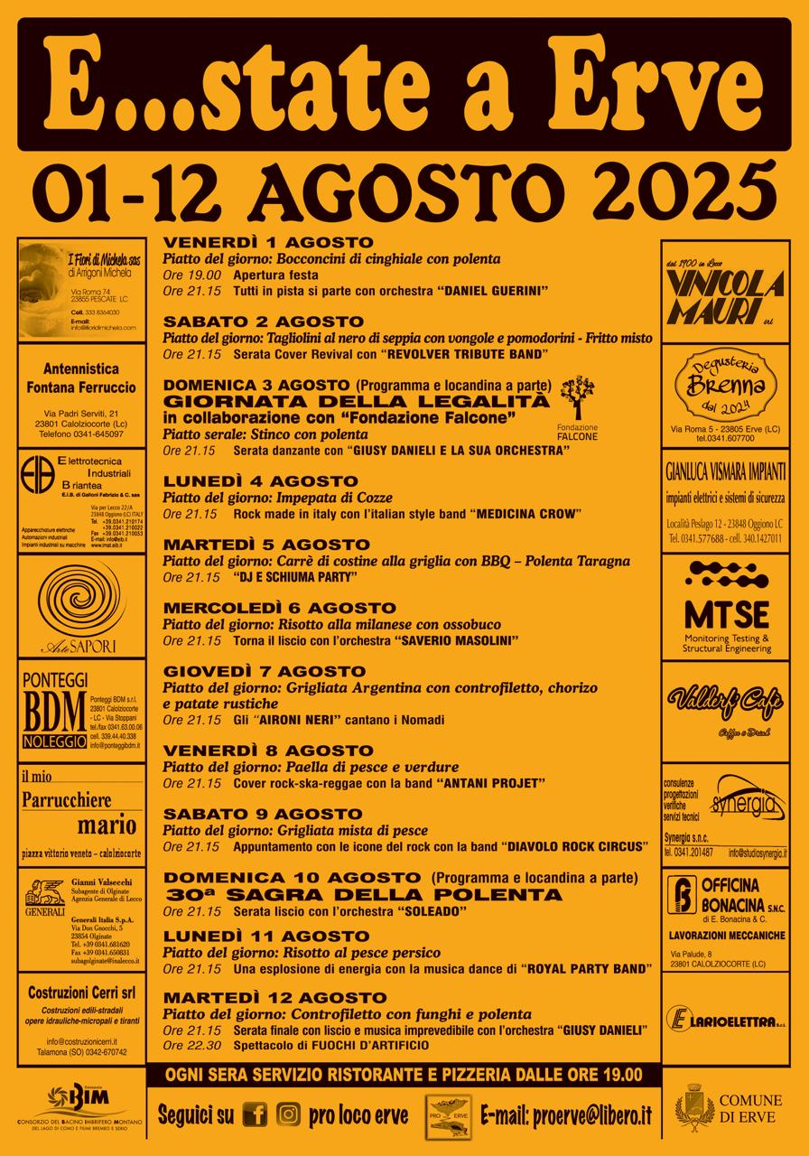 ERVE – Erve si prepara a vivere l’estate all’insegna della tradizione, del divertimento con il ritorno della “Sagra E…state a Erve”, l’appuntamento più atteso della stagione. Anche quest’anno il programma sarà ricco di iniziative per tutte le età, con due momenti clou: la “Domenica per la Legalità”, in calendario il 3 agosto, e l’intramontabile “Sagra della Polenta”, giunta alla sua 30esima edizione, che animerà il paese domenica 10 agosto.