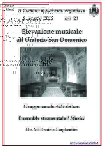 CalolzieseCulturaNotizie brevi Carenno: elevazione musicale all’oratorio di San Domenico Di Andrea Brivio - 02/08/2015 Facebook Twitter WhatsApp Linkedin Email Telegram Tempo di lettura: < 1 minuti CARENNO – Concerto in programma l’8 agosto presso l’Oratorio di San Domenico (Chiesa dei Morti) a Carenno.