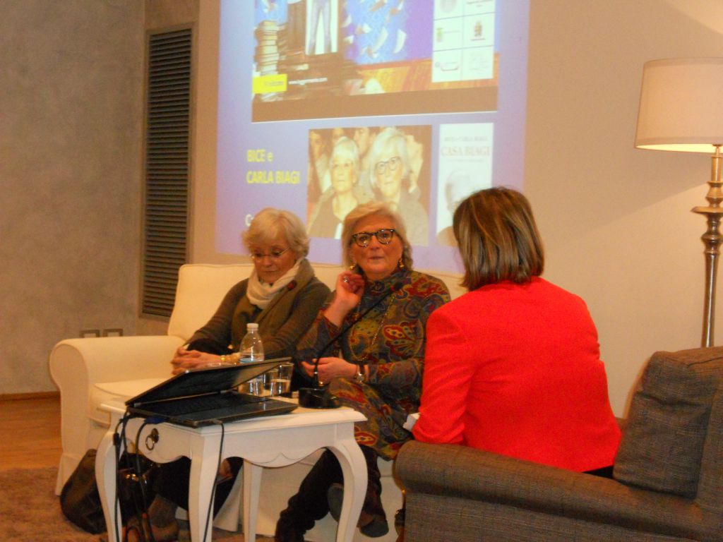 “La casa era un luogo di protezione per papà – ha affermato Bice Biagi – e la sua figura aleggia in tutte le pagine, anche se non abbiamo mai avuto il mito per papà e il suo lavoro”. “Più che di nostro padre – ha ribadito Carla Biagi – si tratta di un libro che straripa di figure femminili: il nostro era un mondo al femminile, gestito dalla nonna e da nostra madre, perché papà spesso per lavoro era lontano da casa. Era un uomo degli anni ’20 che usciva a lavorare, c’era per le decisioni importanti ed era anche severissimo, molto legato agli aspetti formali del comportamento, ma poi quando usciva restava la mamma a gestire tutto”. “Sicuramente c’è gratitudine nei suoi confronti – hanno confidato le sorelle Biagi – ma era difficile rapportarsi con lui: la dialettica tra noi è arrivata molto tardi, certi argomenti non si potevano assolutamente trattare insieme, non c’era una grande confidenza: era dalla nostra parte, ma non era un nostro amico”.