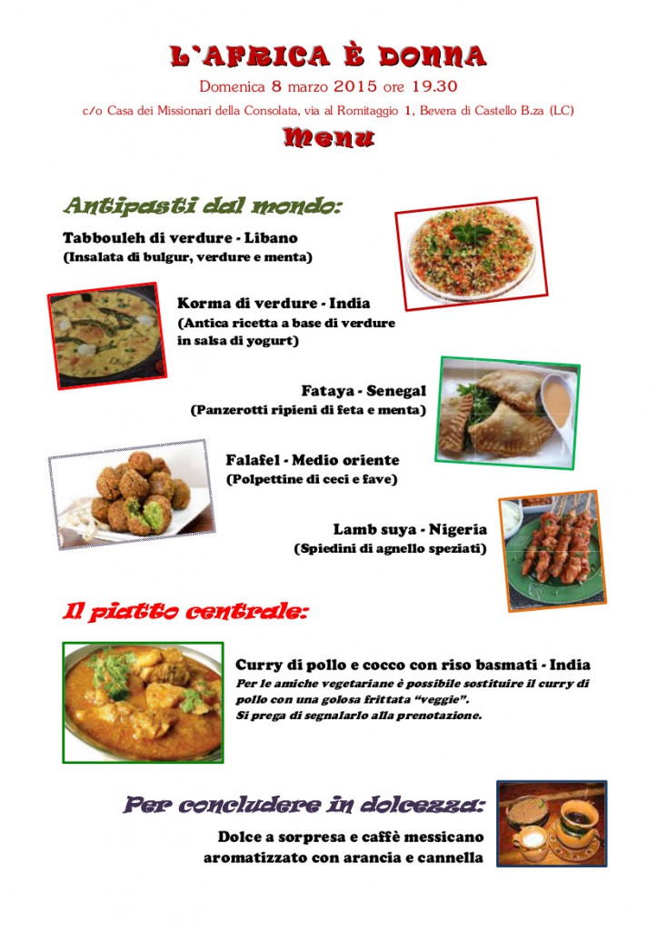 CASTELLO BRIANZA – 5^ edizione della cena etnica “L’Africa è donna” promossa dalle associazioni A força da partilha onlus e Mondeco onlus.