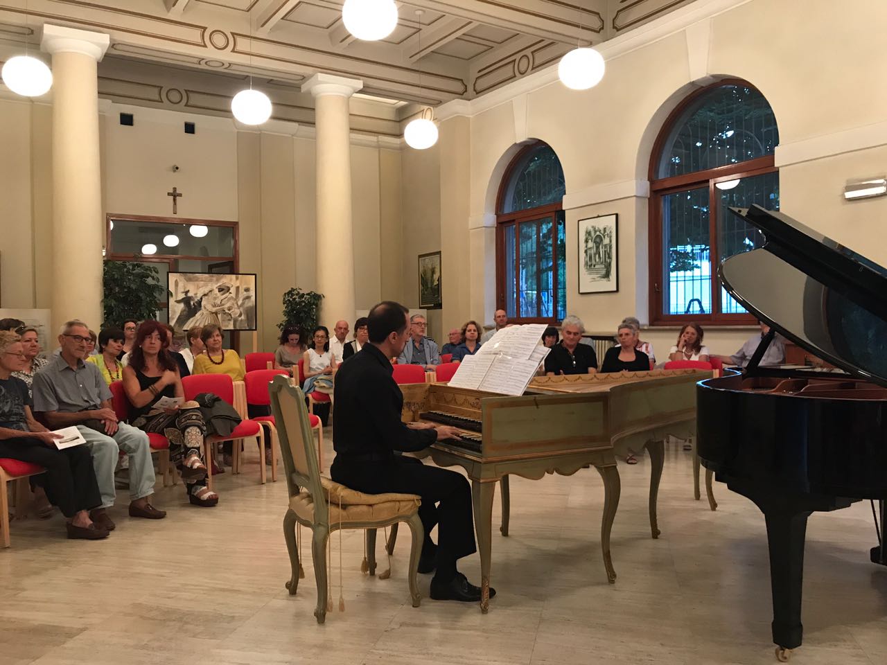 Il concerto si è chiuso con un eccezionale bis che ha reso unico l’evento: il duetto clavicembalo-pianoforte, con i due musicisti che si sono alternati ai rispettivi strumenti e a cui il pubblico in sala ha tributato un lungo applauso finale con standing ovation.
