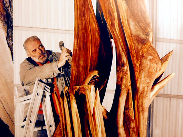“Cinque o sei anni fa cercavo del legno di ulivo per una scultura. Visitando un vivaio a Parma trovai un albero d’ulivo pluricentenario, mi dissero avesse addirittura 800 anni, lì trapiantato. Era oramai secco e morto e sarebbe diventato legna da ardere. La sua figura mi colpì, era come se mi chiamasse: era una pianta vissuta centinaia di anni ansiosa di raccontare i segreti della sua vita. Così, nella sua morte, ho capito che avrei dovuto dargli una nuova vita, a completamento del ciclo di cui tutti gli esseri viventi fanno parte. Lo feci portare nel mio laboratorio e tempo dopo iniziai a scolpirlo: quella meraviglia della natura era viva e aveva bisogno dell’arte per continuare il suo cammino. Casualmente mi chiesero di poterla esporre ad Expo: lì collocata la scultura, alta 5 metri e 30 centimetri, accoglie tutti i visitatori. L’ho chiamata ‘La vita dopo la vita’ “.
