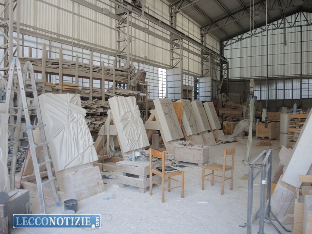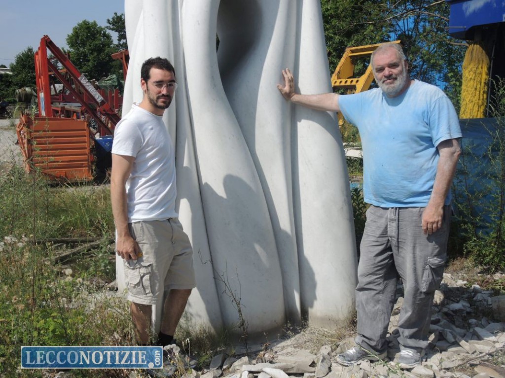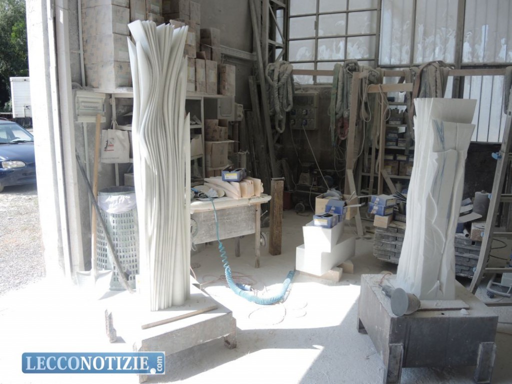 “Già. All’inizio avevo un piccolo laboratorio a Valmadrera, poi mi son spostato a Lecco ma alla fine le opere sempre più grandi mi hanno costretto a cercare uno spazio maggiore e l’ho trovato qui. Di lavoro ce n’è sempre, in laboratorio mi capita di stare 12 ore e più. Ad aiutarmi ho un amico, marmista, che si occupa della finitura delle opere, ma tra qualche mese arriverà anche un ragazzo che ha appena concluso gli studi superiori e farà qui uno stage. Poi, quando non è impegnato ad allestire mostre in giro per il mondo, ho l’aiuto anche di uno dei miei due figli, Piero.”