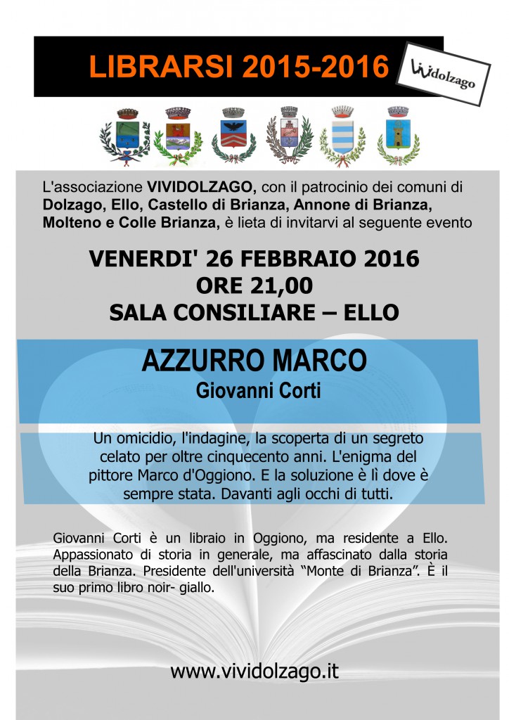 CulturaNotizie brevi Dolzago: il prossimo appuntamento con Librarsi Di Andrea Brivio - 15/02/2016 Facebook Twitter WhatsApp Linkedin Email Telegram Tempo di lettura: < 1 minuti DOLZAGO – La locandina del prossimo appuntamento con Liberarsi:
