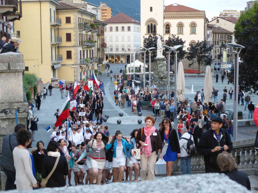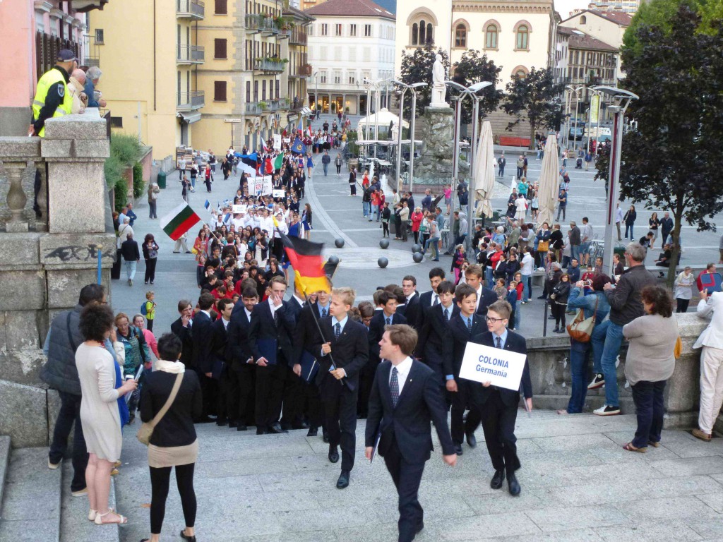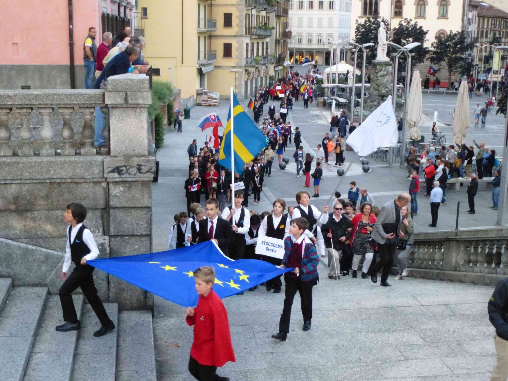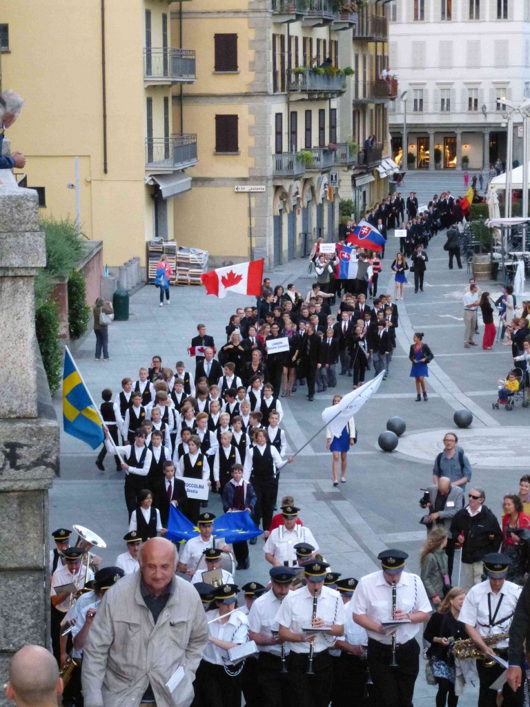 Prima del concerto di gala nella Basilica di San Nicolò, dedicato per l’occasione al compianto Angelo Sala, tutti i cori che partecipano all’edizione 2014 del Festival si sono radunati in piazza Garibaldi per sfilare sul lungolago fino in piazza Cermenati; da qui hanno raggiunto il sagrato della Basilica, entrando in chiesa per cantare collettivamente l’inno europeo ed assistere all’esibizione dei cori di Svezia, Slovenia, Canada e Germania.