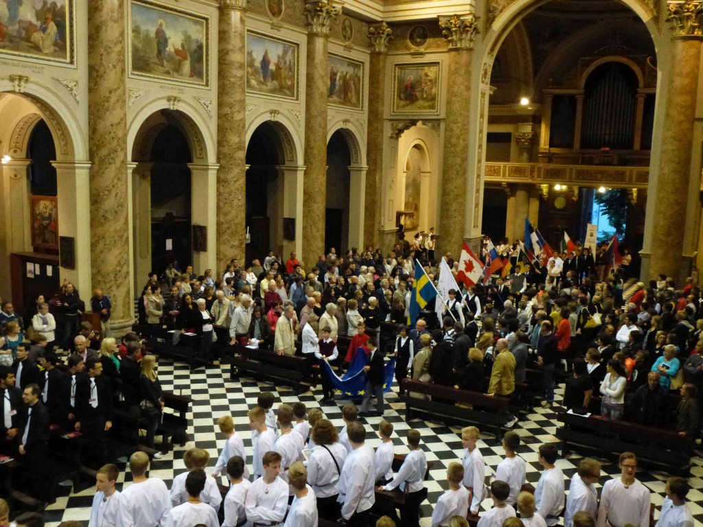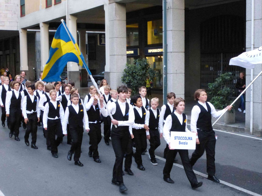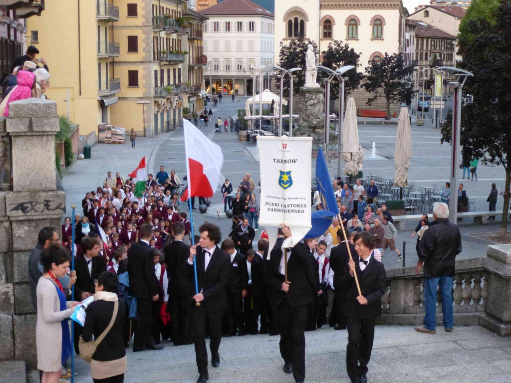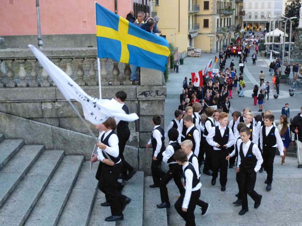 Prima del concerto di gala nella Basilica di San Nicolò, dedicato per l’occasione al compianto Angelo Sala, tutti i cori che partecipano all’edizione 2014 del Festival si sono radunati in piazza Garibaldi per sfilare sul lungolago fino in piazza Cermenati; da qui hanno raggiunto il sagrato della Basilica, entrando in chiesa per cantare collettivamente l’inno europeo ed assistere all’esibizione dei cori di Svezia, Slovenia, Canada e Germania.