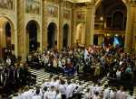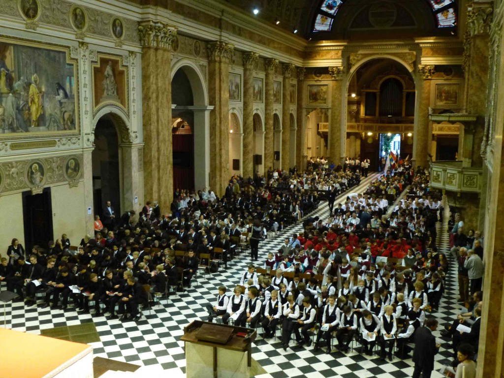 Parole di grande vicinanza ai giovani coristi e ai loro direttori sono state espresse anche da monsignor Franco Cecchin, prevosto di Lecco: “è emozionante accogliere più di 550 giovani europei qui a Lecco. Il vostro canto sia un’invocazione corale al Dio della pace, affinché giovani ebrei e palestinesi non vengano mai più uccisi dalla violenza”. “Il canto cambi il cuore degli uomini – ha esortato monsignor Cecchin – trasformandolo da un cuore di violenza ad uno di pace. È una missione non da poco, ma invocare il Dio della pace significa cambiare il cuore vostro, delle vostre nazioni e dell’Europa intera: siete disposti ad assumervi questo compito?”.