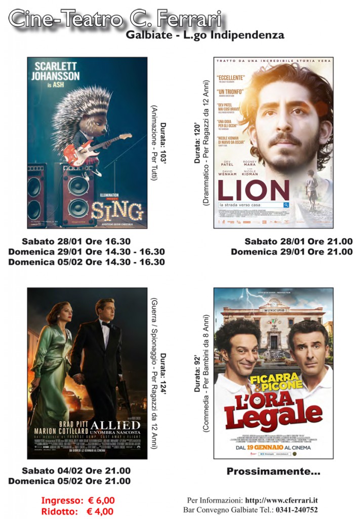 CulturaNotizie brevi Galbiate: ecco i prossimi film al Cine-Teatro Ferrari Di Andrea Brivio - 23/01/2017 Facebook Twitter WhatsApp Linkedin Email Telegram Tempo di lettura: < 1 minuti GALBIATE – La programmazione di fine febbraio, inizio gennaio al Cine-Teatro C. Ferrari di Galbiate.