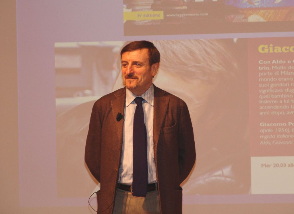 LECCO – Comico anche nella presentazione del suo libro, Giacomo Poretti, il “Giacomino” del trio Aldo Giovanni e Giacomo, ha scelto una divertente trovata per presentarsi al pubblico di studenti e di curiosi che lo attendeva nella mattinata di mercoledì all’auditorium della Casa dell’Economia: fingendo la sua impossibilità di raggiungere Lecco, l’attore si è mostrato alla platea in un collegamento video; in realtà, il comico si era appartato nell’altra sala conferenze della Camera di Commercio e grande è stata la sorpresa dei più piccoli nel vederlo varcare la soglia dell’auditorium.