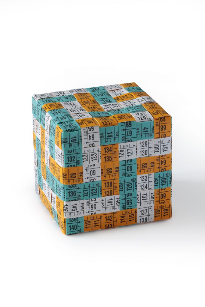 Nell’estate del 2012 per la prima volta assembla nello stesso quadro metri e nastri di velluto e raso. Diversi per morfologia e funzione i materiali coesistono, si valorizzano, si esaltano l’uno a contatto con l’altro: Misure morbide.