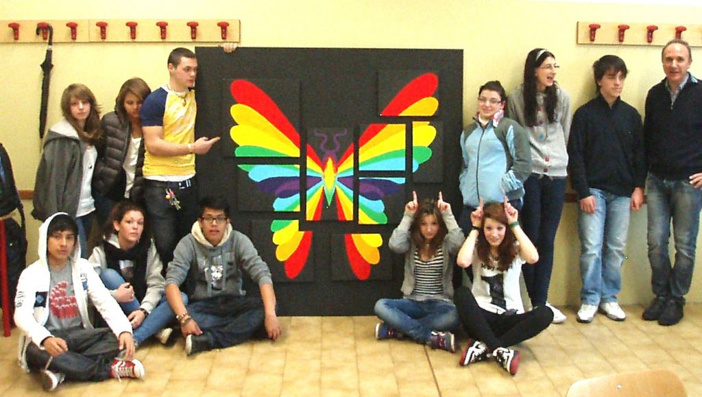 I ragazzi, che saranno accompagnati dal prof. Giovanni Pavone, si occuperanno dell’allestimento della sala, con due murales preparati presso gli istituti scolastici nell’ambito dei laboratori educativi/didattici. “Nell’ambito del convegno – spiega il docente di grafica, prof. Sergio Chillè – ci è stato chiesto dalla Provincia di Lecco di partecipare attivamente realizzando un pannello sul tema del Lavoro Integrazione Razzismo. Dopo un brain stormig con l’intera classe, 1° U Grafica Multimediale, sono emerse una serie di motivazioni che hanno focalizzato l’attenzione sulla farfalla come soggetto da realizzare: il bruco si trasforma in farfalla, ovvero le apparenze ci impediscono spesso di vedere oltre, l’operosa farfalla non discrimina i fiori per i loro colore, si posa su tutti indistintamente; inoltre, per la Teoria dei colori, le sette tonalità dell’arcobaleno si fondono insieme per formare il bianco. Il lavoro ha visto la classe coinvolta per tre settimane”.