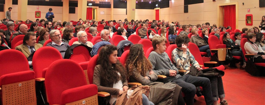 “Molta gente ha perso i propri cari, non ha più un lavoro e le condizioni di vita sono durissime. Ad Aleppo solo un terzo della città non è nelle mani degli Islamisti. Luce e acqua arrivano solo per 3 ore al giorno e si vive sotto il pericolo costante di bombardamenti. La gente ha paura, sempre. Ma dentro questo orrore ci sono dei luoghi incredibili: come il convento francescano, un centro di accoglienza che permette a chi arriva di non sentirsi abbandonato. Il sentirsi voluti bene, l’amicizia vera che sta nascendo anche tra persone di religioni diverse non toglie la paura, ma cambia lo sguardo. E ritengo che solo questo sguardo di misericordia possa davvero cambiare la storia”. Giorgio Riva, studente del Liceo, ha chiuso l’incontro ringraziando i relatori “per aver testimoniato come l’unico sguardo umano sia quello desideroso di guardare in faccia ciò che sta accadendo, combattendo l’indifferenza”.
