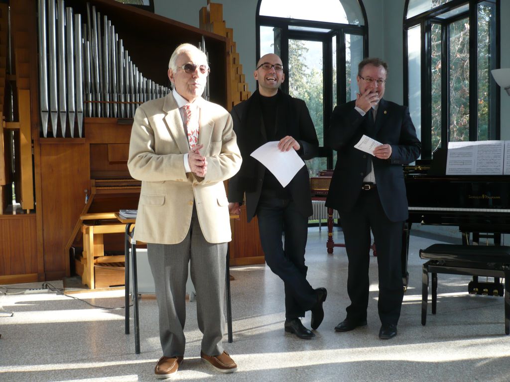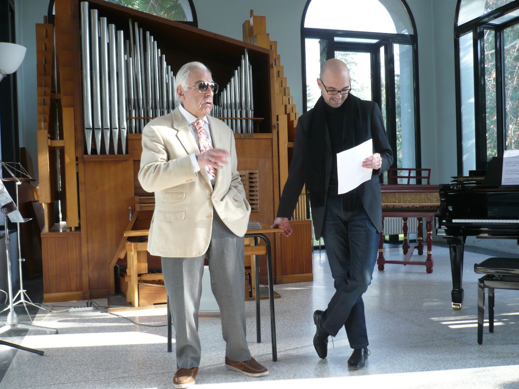 La mattinata ha avuto inizio con una breve apertura musicale, che ha visto una giovane allieva della Scuola Civica, Giulia, cimentarsi a fianco del maestro Massimo Borassi in un duo pianoforte-violino. Subito dopo è intervenuto Giorgio Gaslini, tra le altra cose autore di colonne sonore di film del calibro di “La Notte” di Michelangelo Antonioni e “Profondo Rosso” di Dario Argento.