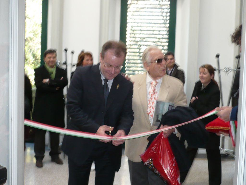 Taglio del nastro per le sale musicali Fondo Giacomo De Santis e Fondo Giorgio Gaslini, situate all’interno della Scuola Civica lecchese, nel parco di Villa Gomes. Nella mattina di sabato e alla presenza del musicista jazz di fama mondiale Giorgio Gaslini, il sindaco di Lecco Virginio Brivio ha, infatti, ufficialmente intitolato e aperto al pubblico le due nuove stanze, collocate al primo piano di Villa Gomes, nell’omonimo parco di Maggianico.