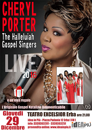 ERBA – Da Chicago a Erba per un concerto indimenticabile: la nota cantante statunitense Cheryl Porter sarà sul palco del Cine Teatro Excelsior di Erba il prossimo 29 dicembre insieme al The Halleluiah Gospel Singers.