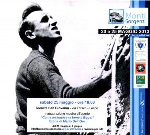 Terminata la fase escursionistica all’aria aperta, i riflettori di Monti Sorgenti si sposteranno sul quartiere di San Giovanni e più precisamente in via Fritsch, dove alle ore 18 verrà inaugurata la mostra all’aperto dedicata a una delle figure storiche dell’alpinismo lecchese: Mario “Boga” Dell’Oro. Il “Boga”, come lo chiamavano gli amici, è stato una delle figure più importanti dell’alpinismo lecchese e la mostra a lui dedicata, intitolata “Come arrampicava bene il Boga! Storia di Mario Dell’Oro”, si propone l’obiettivo di presentare vecchie immagini e uno spaccato della storia di questo grande alpinista. Le immagini, con didascalie redatte da Alberto Benini, saranno appese nel quartiere di San Giovanni, proprio nei luoghi dove Mario Dell’Oro ha vissuto. La mostra resterà installata dal 25 maggio fino al 7 giugno, mentre al termine dell’inaugurazione di sabato 25 maggio seguirà un momento di intrattenimento con il coro A.N.A. dell’Adda e una raviolata per tutti i partecipanti.