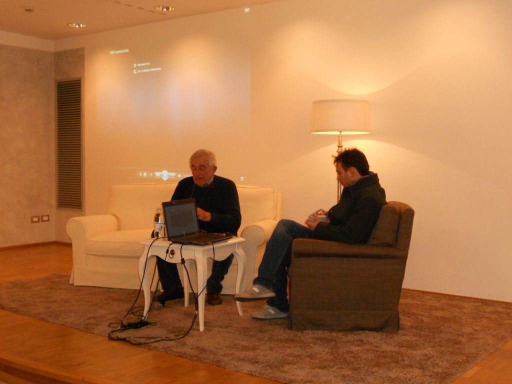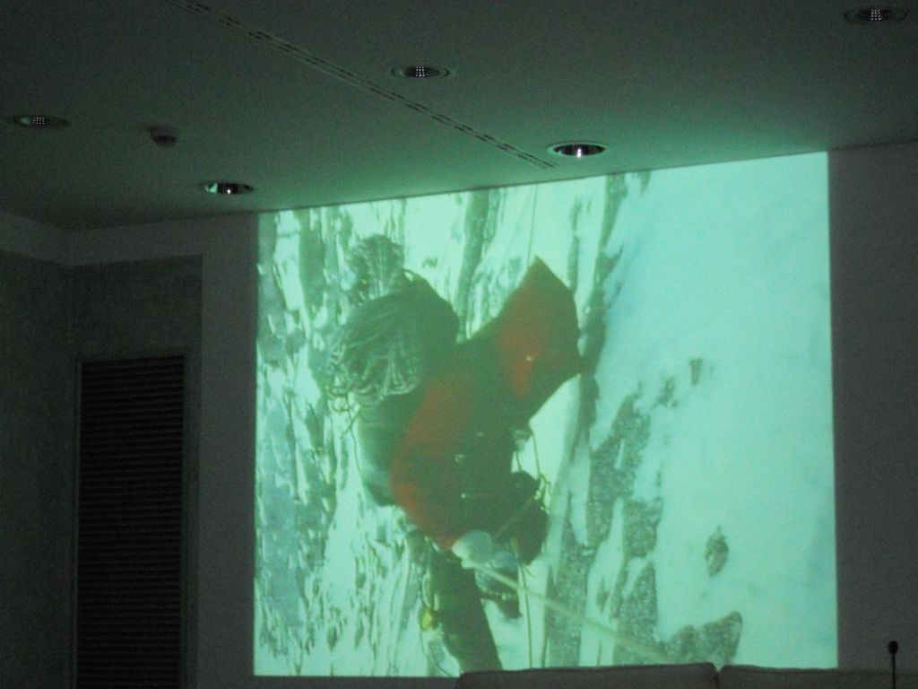 La presentazione si è quindi conclusa con la visione di un filmato, che come ha spiegato Gianni Rusconi, “è stato montato con un mix di scene filmate durante le salite invernali con cineprese da 16mm: oltre alla fatica alpinistica, a quel tempo giravamo sempre con la cinepresa e così anche per questo motivo ci consideravano un pò matti”.