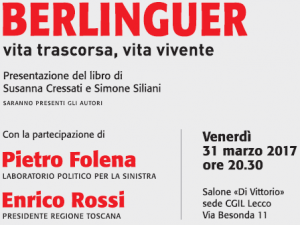 LECCO – “Berlinguer: vita trascorsa, vita vivente”, il libro di Susanna Cressati e Simone Siliani, sarà presentato a fine mese a Lecco.