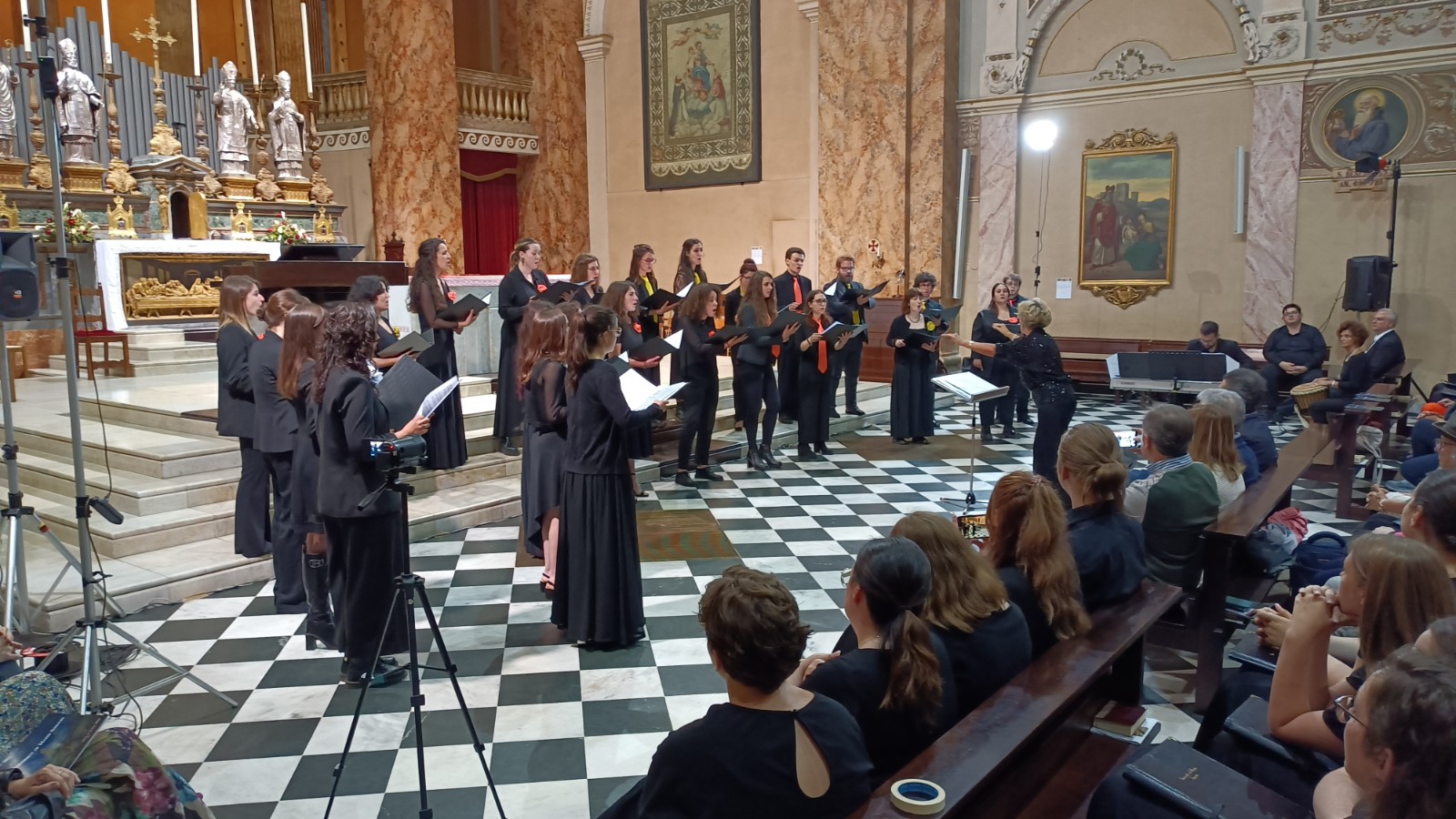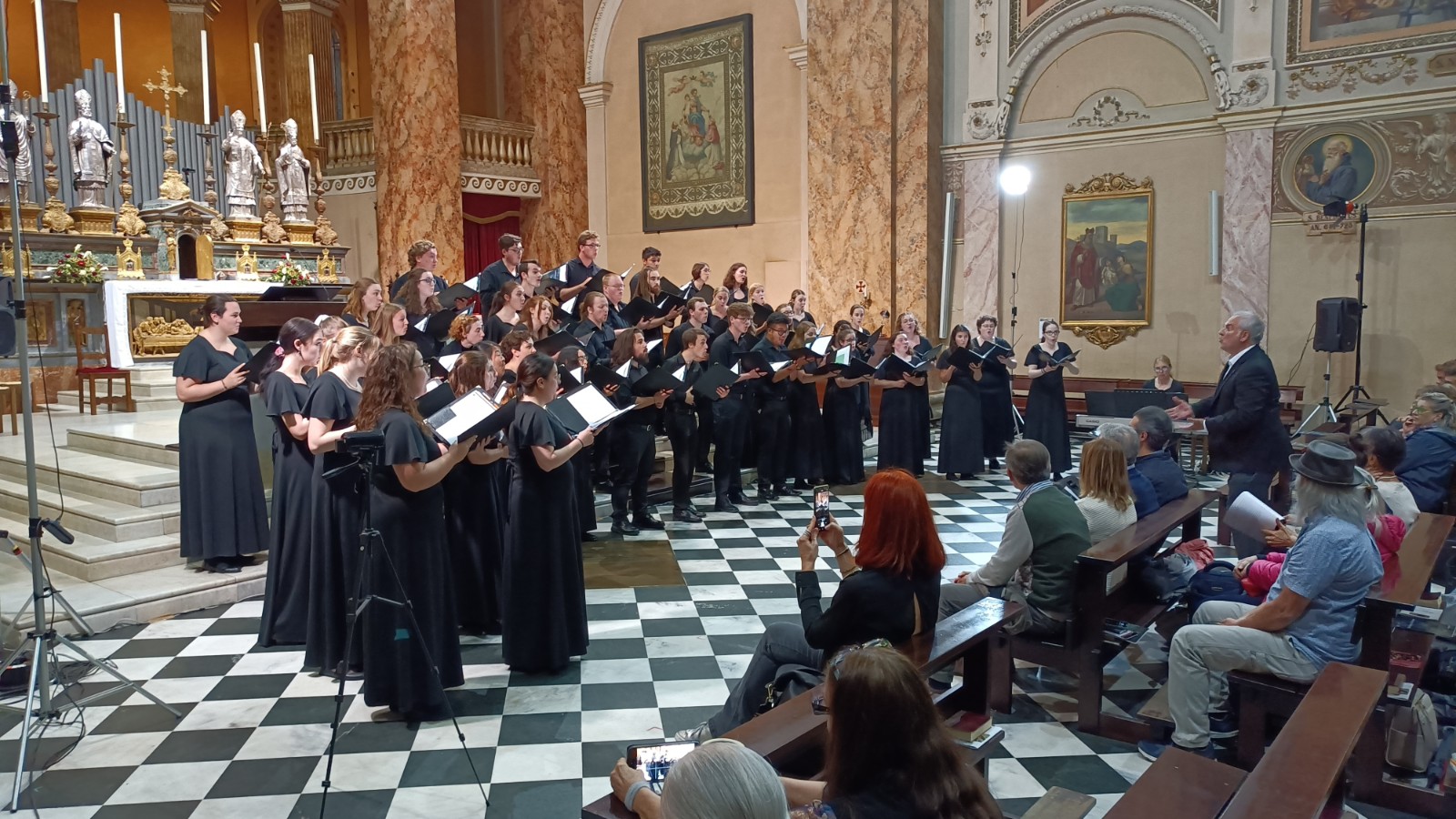 Organizzata con grande cura da Harmonia Gentium per rafforzare le relazioni internazionali dell’associazione createsi nel tempo grazie al Festival Zelioli, l’esibizione dei coristi d’oltreoceano diretti dal loro Maestro Francis John Vogt ed accompagnati al pianoforte da Laura Artesani (presidente della divisione musica della School of Performing Arts dell’Università del Maine) si è concentrata su brani di autori americani (anche contemporanei) con escursioni nella musica di Palestrina, Rossini e Verdi in omaggio all’Italia.