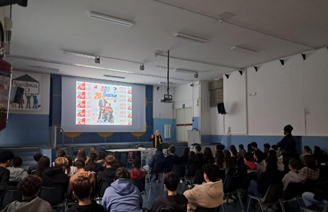 Di fronte a un’aula attenta, Fontana ha ripercorso la storia e gli obiettivi di Telethon, realtà impegnata da anni nella raccolta fondi destinata alla ricerca scientifica. In un passaggio particolarmente sentito, ha richiamato l’importanza della partecipazione collettiva: un gesto di solidarietà, ha spiegato, può trasformarsi in un sostegno concreto per chi affronta patologie spesso poco conosciute. Gli studenti hanno seguito il racconto con interesse, intervenendo con domande e osservazioni che hanno contribuito a rendere l’incontro un dialogo autentico.