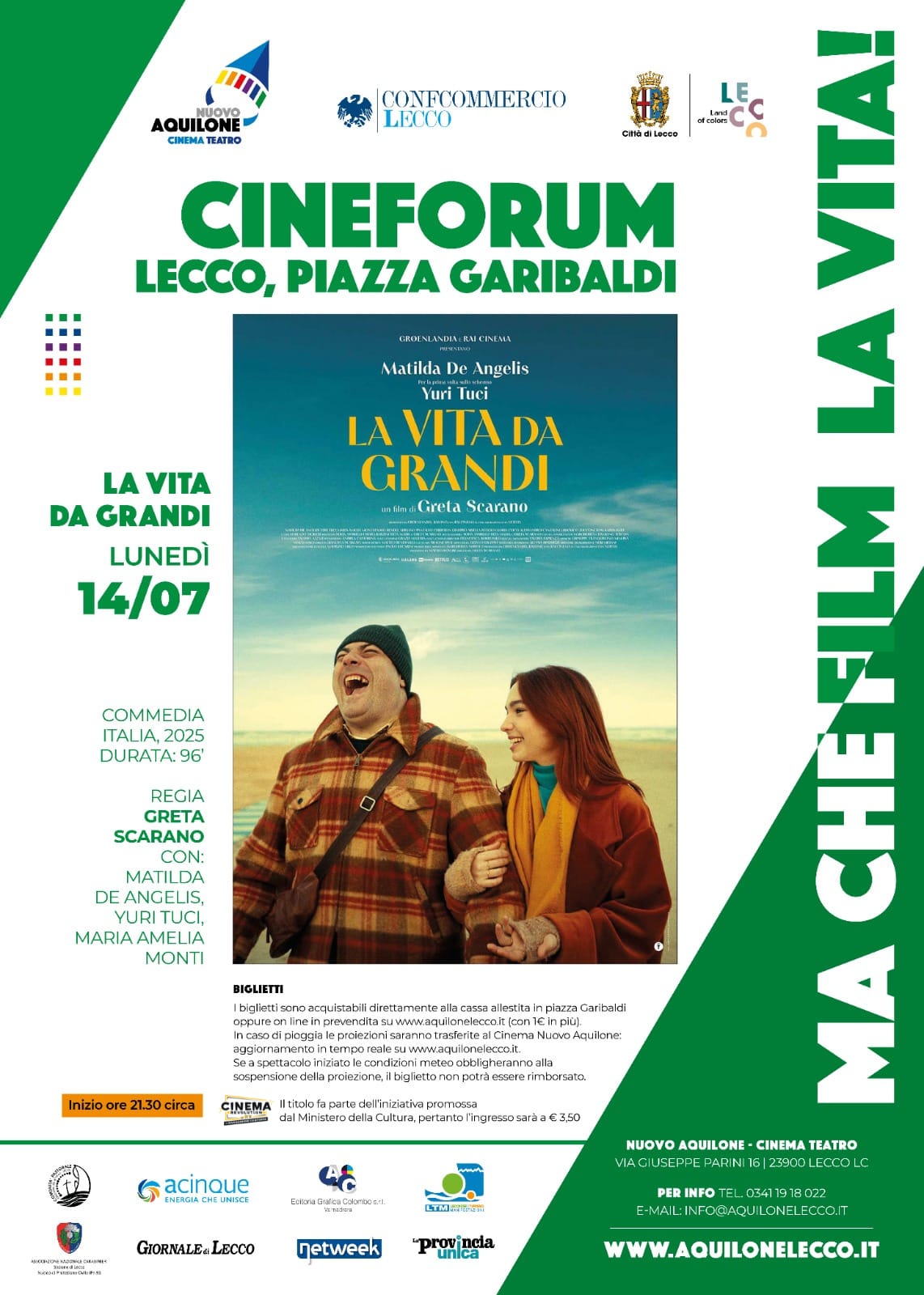 In caso di pioggia le proiezioni saranno trasferite al Cinema Nuovo Aquilone in via Parini 16: aggiornamento in tempo reale su www.aquilonelecco.it. Se a spettacolo iniziato le condizioni meteo obbligheranno alla sospensione della proiezione il biglietto non potrà essere rimborsato. Per informazioni: 03411918022; email info@aquilonelecco.it.