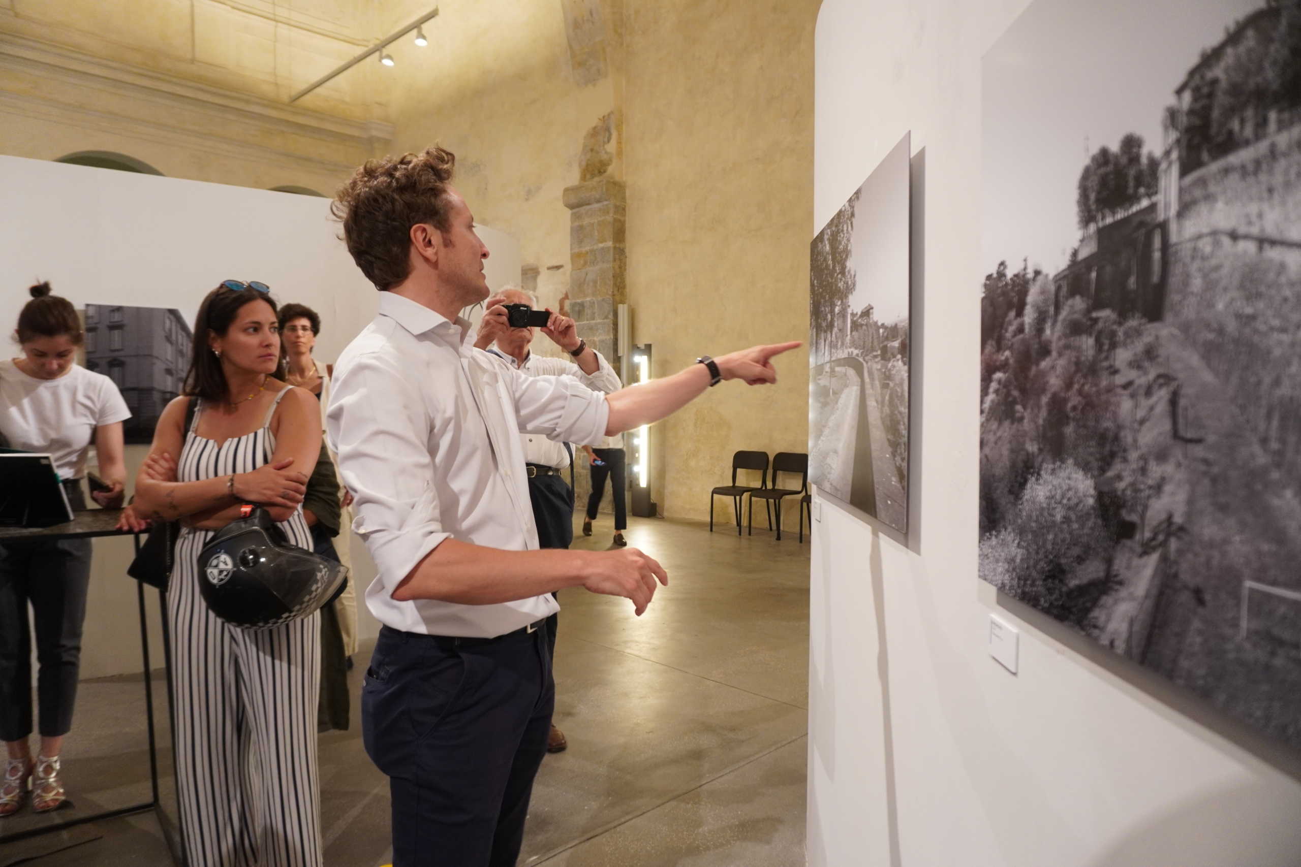 La mostra è realmente un viaggio, una suggestione favorita anche dall’allestimento che grazie alle strutture che frammentano l’unica, ampia navata, consente di “addentrarsi”, avvicinarsi al cuore della città, rapiti dai volumi, dalle prospettive, dagli edifici in dialogo tra loro, mentre spazi, forme, inquadrature rivelano l’anima della città.