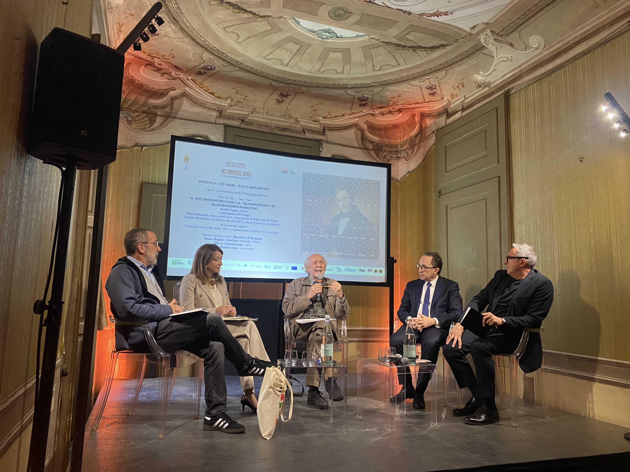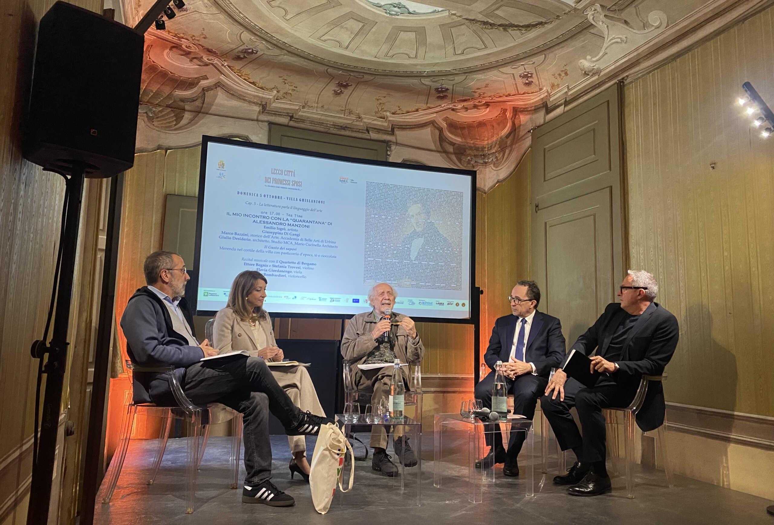 LECCO – Villa Ghislanzoni ha fatto cornice, nel pomeriggio del 5 ottobre, al format “Tea Time in Villa”, evento conclusivo del festival “Lecco città dei Promossi Sposi 2025”, dedicato all’incontro tra l’artista Emilio Isgrò e la “Quarantana” di Alessandro Manzoni. L’iniziativa ha registrato il tutto esaurito, con un pubblico pronto ad approfondire le mille sfaccettature del romanzo e il progetto del nuovo museo manzoniano in fase di progettazione.
