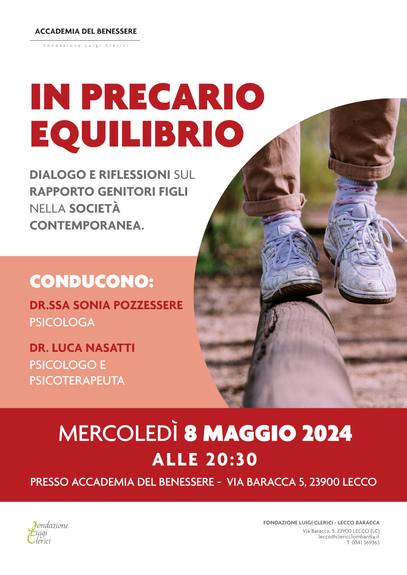 LECCO – La Fondazione Luigi Clerici, tramite la sua Accademia del Benessere, presenta una serata speciale dedicata al delicato dialogo tra genitori e figli nella società moderna. Con il titolo “In Precario Equilibrio”, l’evento mira a esplorare le sfide e le opportunità che caratterizzano i rapporti familiari nel mondo odierno.