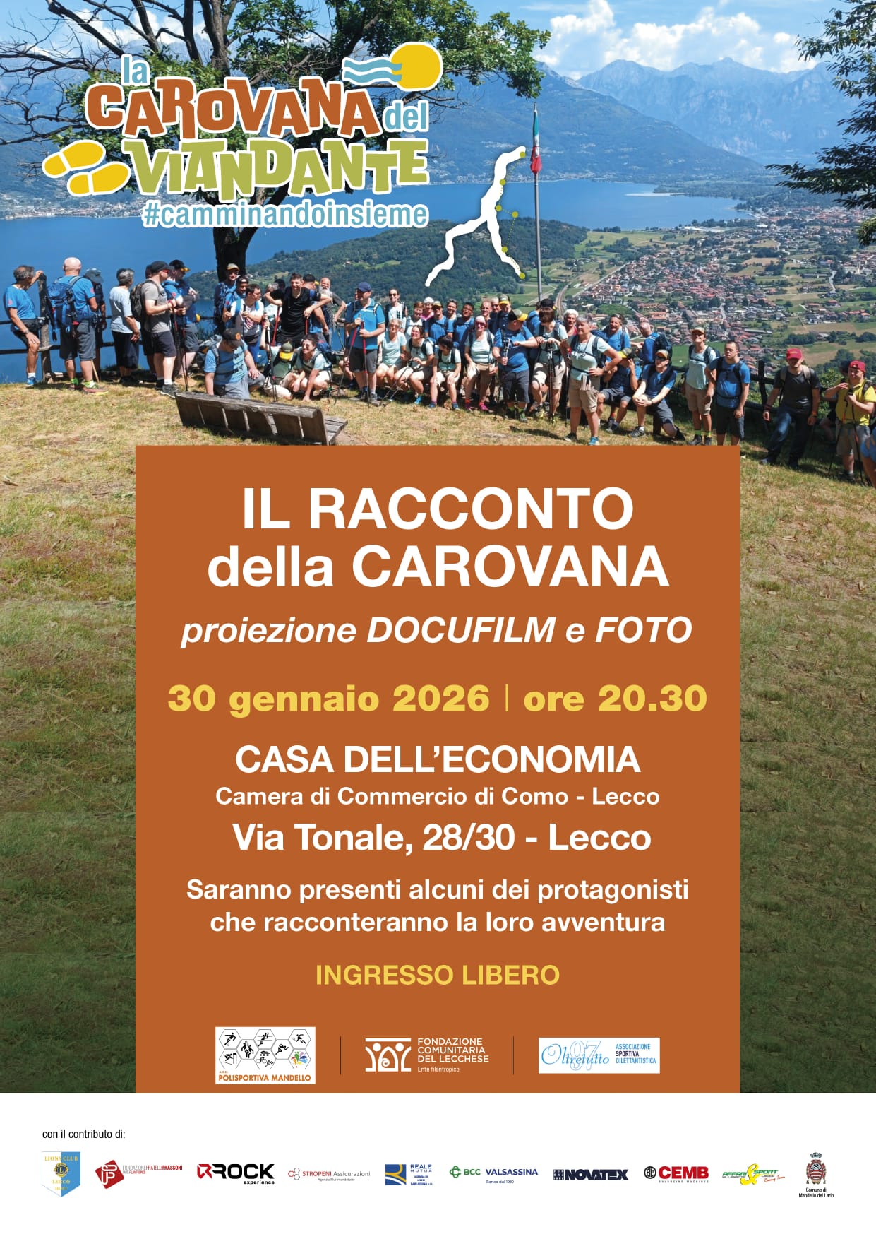 LECCO – La Carovana del Viandante arriva a Lecco per raccontare al pubblico il senso e i contenuti di un’esperienza di cammino che ha unito inclusione, condivisione e territorio. “Il racconto della Carovana” è il titolo della serata che propone la proiezione di un docufilm e di una selezione fotografica, accompagnata dalle testimonianze dirette di alcuni dei protagonisti.