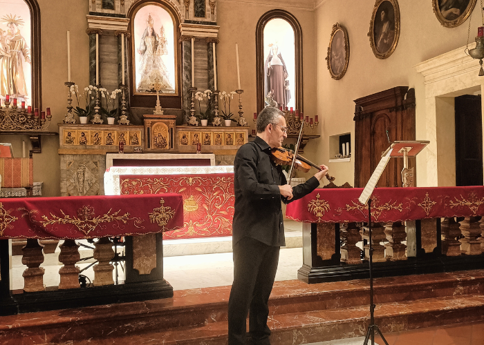 Giovedì 12, il violinista Antonio Mastalli ha proposto un itinerario intellettuale ed emozionale di grande fascino, che ha attraversato Oriente e Occidente attraverso un programma di tre opere per violino legate da significativi collegamenti stilistici e storici. La prima parte ha visto protagonista la Partita n. 2 di Bach, uno dei massimi esempi della sua religiosità artistica, dove l’armonia musicale riflette la perfezione della Creazione.