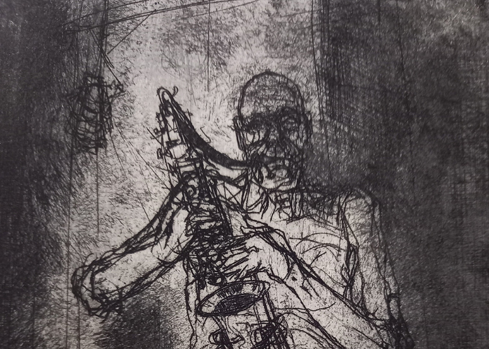 In mostra, per la prima volta, i quattro grandi teleri (cm 200 x 150) che non furono esposti nel ’95, insieme a una selezione di incisioni dedicate al jazz, già presentate alla Biennale di Venezia del 1962.