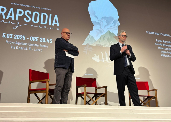 LECCO – Oltre un centinaio di spettatori al Cinema Teatro “Nuovo Aquilone” e circa ottanta studenti delle scuole superiori della città all’Auditorium dell’Officina Badoni hanno assistito, nei giorni scorsi, alla proiezione simultanea del docufilm RAI Rapsodia Manzoniana, dedicato ad Alessandro Manzoni. Il progetto è nato da un’idea di Mons. Davide Milani, presidente dell’Ente dello Spettacolo Italiano, e di Davide Rampello, direttore creativo dello studio Rampello & Partners.