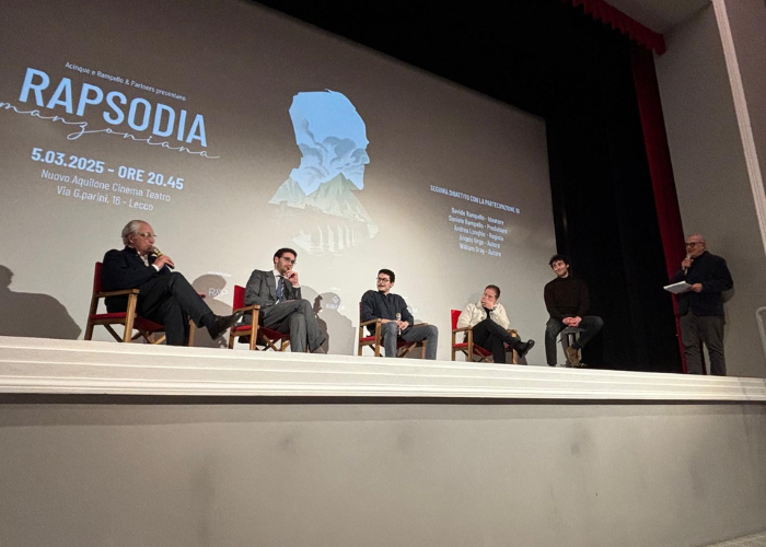 Un debutto emozionante per i protagonisti di Rapsodia Manzoniana, nella città manzoniana per eccellenza, che sono stati presenti al “Nuovo Aquilone”. Al termine della proiezione, hanno partecipato a un dibattito vivace e intenso, moderato da Davide Rampello e arricchito dagli interventi di Daniele Rampello (produttore, CEO e fondatore di Rampello & Partners), Andrea Longhin (regista e fondatore di Nubifilm Studio) e degli autori e sceneggiatori Angelo Urgo e William Gray.