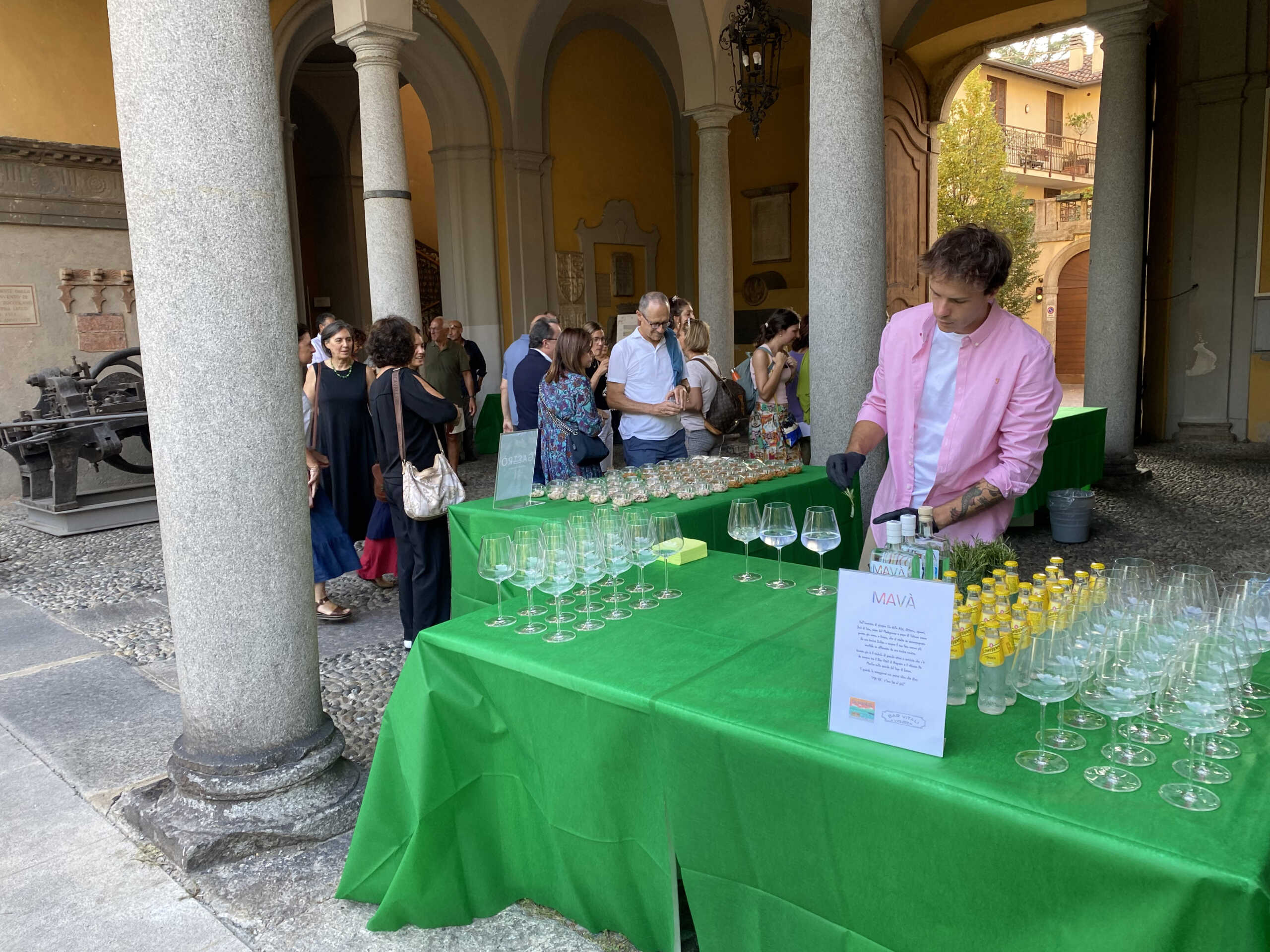 Al termine dell’incontro, è stato offerta ai presenti la degustazione del gin “MA VA’”, prodotto dal Bar Vitali di Acquate e dal chiosco Da Manfre nei pressi del Ponte Kennedy, sulla sponda del lago di Lecco: un gin secco e fresco, che nasce dall’incontro di ginepro blu delle Alpi, dittamo, agrumi, fiori di loto, pepe del Madagascar e pepe di Sichuan e che si esalta accompagnato da una tonica Indian. La degustazione si è accompagnata da alcune creazioni gastronomiche di Gastrò Lecco.