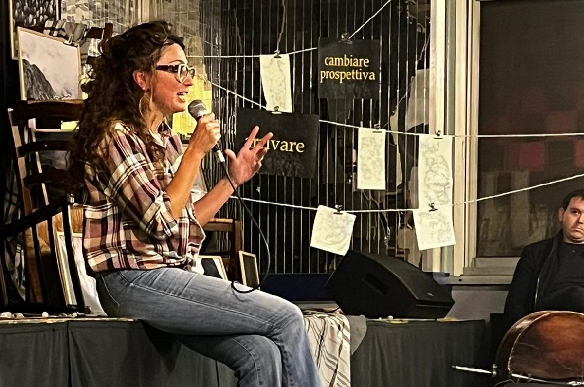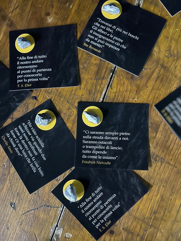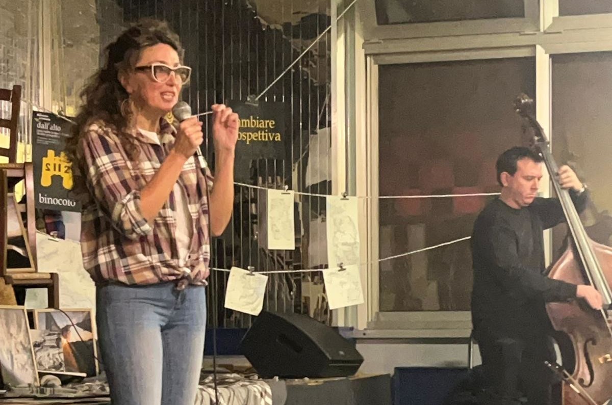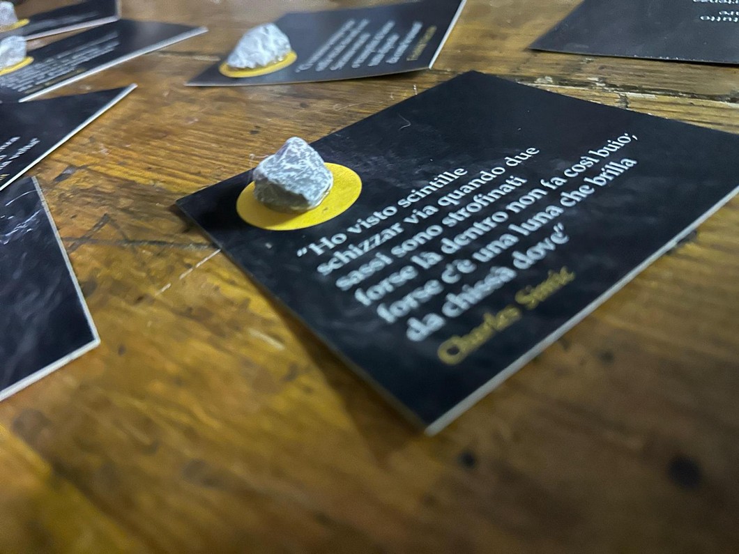 Proprio l’ultima parte della serata è stata accompagnata da Daniele Giampaolo, musicista della Filarmonica di Bruxelles, che con il suo contrabbasso ha interpretato il racconto della serata replicando con il gesto delle mani e con la musica il salire e lo scendere. Il folto pubblico ha salutato la dottoressa Monciotti portandosi a casa un sasso con scritta una frase preparato dal creativo Giuseppe Villa: “Un gesto simbolico che sottolineava il fatto di portare a casa con sé un pezzo di questa esperienza”.