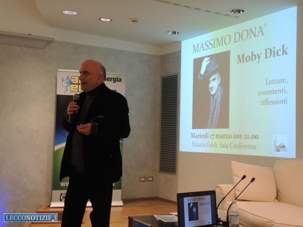 LECCO – Un grande classico della letteratura occidentale sotto i riflettori del palcoscenico di Leggermente martedì sera presso la sala conferenze di Palazzo Falck: si tratta di “Moby Dick”, il romanzo dello scrittore statunitense Herman Melville, pubblicato nel 1851. A darne una profonda rilettura è stato Massimo Dona’, filosofo e musicista veneziano ospite della VI^ edizione della kermesse lecchese che quest’anno ha come tema il viaggio.