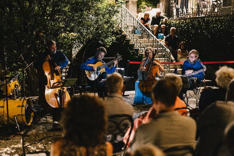 VARENNA – Il mese di agosto all’insegna del Festival di musica “Tra Lago e Monti” si è aperto con uno straordinario successo a Villa Cipressi. Martedì 5 agosto un pubblico numeroso e appassionato ha raggiunto Varenna per la serata dedicata a Duke Ellington, protagonisti il Cuartet (formato da Roberto Porroni alla chitarra, Adalberto Ferrari a clarinetto e C melody, Marija Drincic al violoncello e Marco Ricci al contrabbasso), insieme alla batteria di Tommy Bradascio.