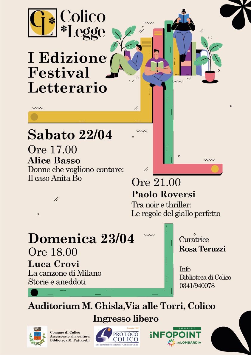COLICO – Fervono i preparativi per la prima edizione del festival letterario “Colico Legge”, evento ad ingresso libero dedicato al libro e alla letteratura, in programma sabato 22 e domenica 23 aprile presso l’Auditorium Ghisla di Colico.