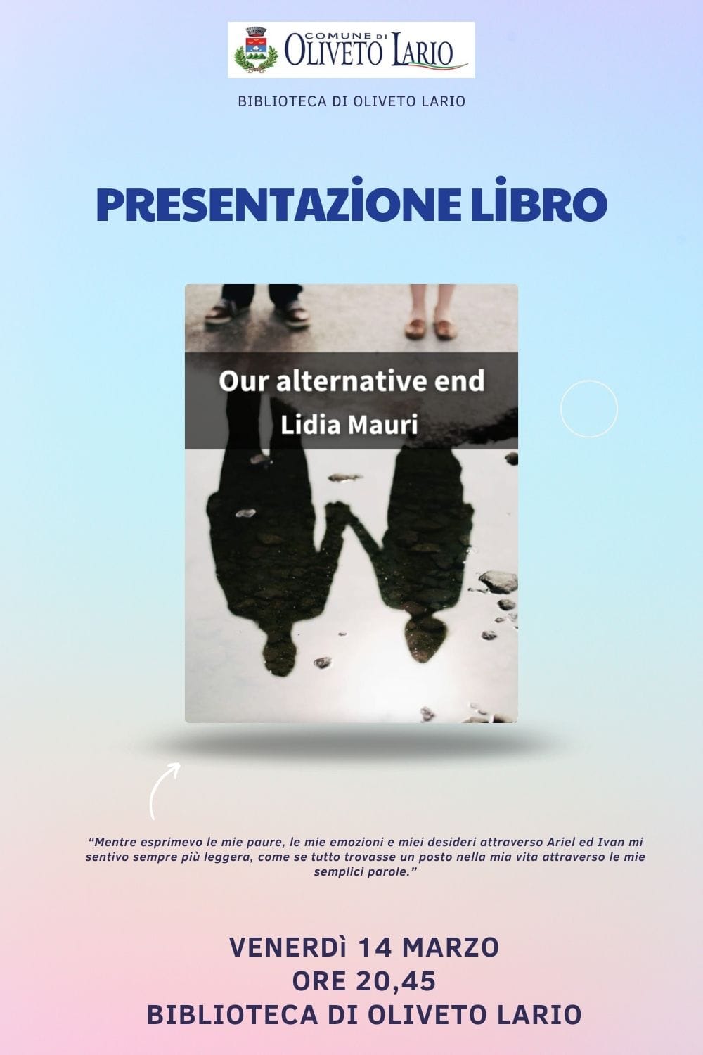 Proseguono gli incontri promossi dalla Biblioteca Comunale di Oliveto Lario con la presentazione del libro Our alternative end, opera prima di Lidia Mauri. “Siamo davvero lieti di ospitare Lidia che, a soli 15 anni, ha avuto il coraggio e la determinazione di concretizzare la sua passione per la scrittura, con la pubblicazione di questo romanzo. Nella nostra biblioteca comunale la sezione dedicata ai giovani lettori è ricca e curata e speriamo che quel patrimonio librario possa diventare una fonte d’ispirazione anche per qualcuno dei nostri bambini, come lo è stato per Lidia, che prima di essere scrittrice è stata ed è un’appassionata lettrice” chiosa il sindaco Federico Gramatica.