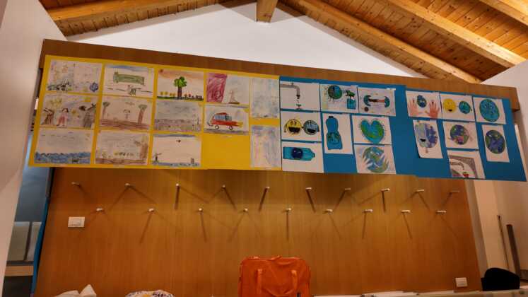 preparatori degli alunni della scuola primaria di Abbadia in vista del murales della