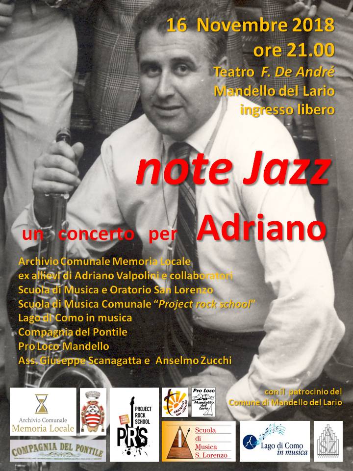 “Note Jazz, un concerto per Adriano” è il nome dell’evento che si terrà venerdì 16 novembre al cineteatro De André. Sul palco si esibiranno gli ex allievi di Valpolini, oggi apprezzati musicisti, ed anche gli studenti delle due scuole di musica di Mandello.